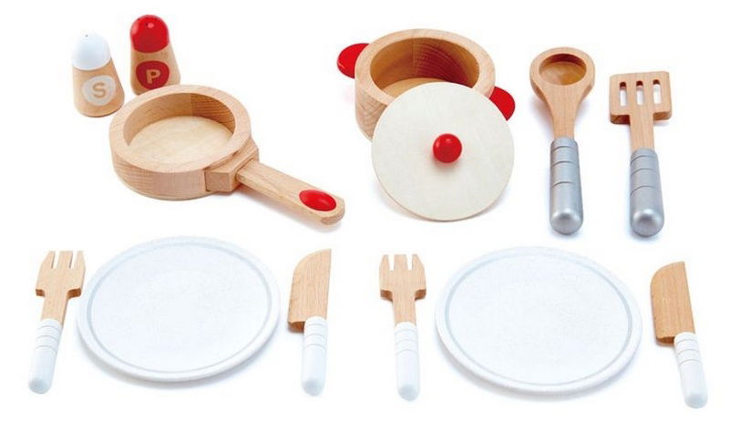 Jede gute Hausfrau braucht Qualitätsgeschirr für ihre Küche. Dank des Kochgeschirrsets werden Sie in der Lage sein, köstliche Gerichte zuzubereiten. Im Paket finden Sie einen Topf mit Deckel (13cm), eine Pfanne, Salz, Pfeffer, 2 Teller (13cm), 2 Bestecke und 2 Küchenutensilien. Geeignet für Kinder ab 3 Jahren. Hergestellt aus hochwertigem und langlebigem Holzmaterial.