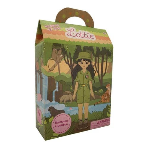 Mit ihrem Fernglas und ihrer Lupe ist sie bereit, den Regenwald zu erforschen und zu schützen, in dem viele bedrohte Tiere und Pflanzen leben. Die Natur hat so viele Abenteuer zu bieten, dass sie geschützt werden muss. In Zusammenarbeit mit dem Rainforest Trust wird die Lottie-Kollektion mit einer Puppe ausgeliefert, die Kinder mit Hilfe eines Kartensets durch die seltene Natur des Amazonas führt. Wie die anderen Puppen der preisgekrönten Lottie-Kollektion ist auch diese Puppe realistisch und soll Kindern eine ehrliche Sicht auf die Welt vermitteln. Lottie wurde speziell für kleine Kinderhände entworfen, hat bewegliche Knie und ist aus hochwertigem, weichem Vinyl und Nylon gefertigt, frei von Phthalaten. Jede Puppe wird in einer attraktiven farbigen Papptasche mit einem durchsichtigen Kunststoffgriff geliefert.